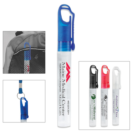 #5242 10 ml. Black Cap Hand Sanitizer Spray Bottle w/Carabiner Clip