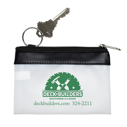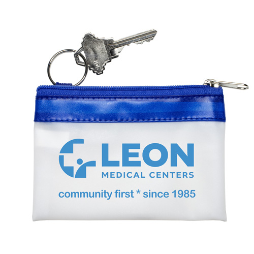 Vinyl travel pouch with keyring. Perfect for travel or for carrying chargers, earphones, makeup, coins, keys, credit cards and cash.