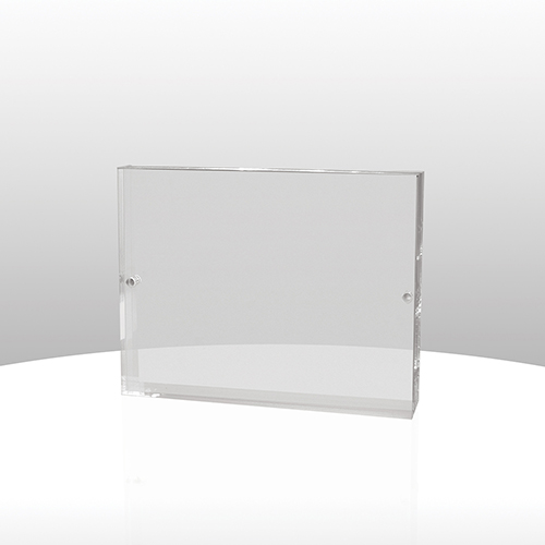 These clear acrylic frames are held together with small, but powerful, magnets. Your favorite pictures or inserts can easily be positioned inside for proud display. Choose from three popular sizes and include your Screen and laser engraved copy on the front.
