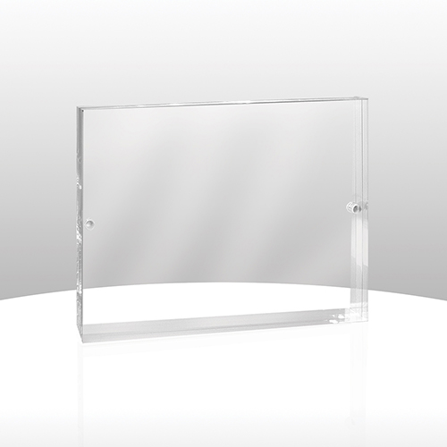 These clear acrylic frames are held together with small, but powerful, magnets. Your favorite pictures or inserts can easily be positioned inside for proud display. Choose from three popular sizes and include your Screen and laser engraved copy on the front.
