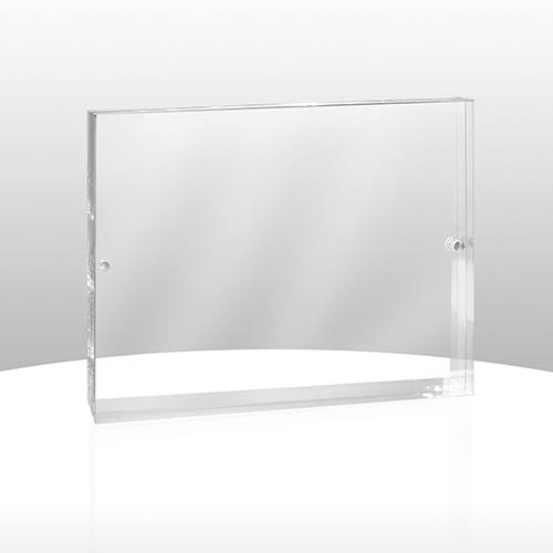 These clear acrylic frames are held together with small, but powerful, magnets. Your favorite pictures or inserts can easily be positioned inside for proud display. Choose from three popular sizes and include your Screen and laser engraved copy on the front.