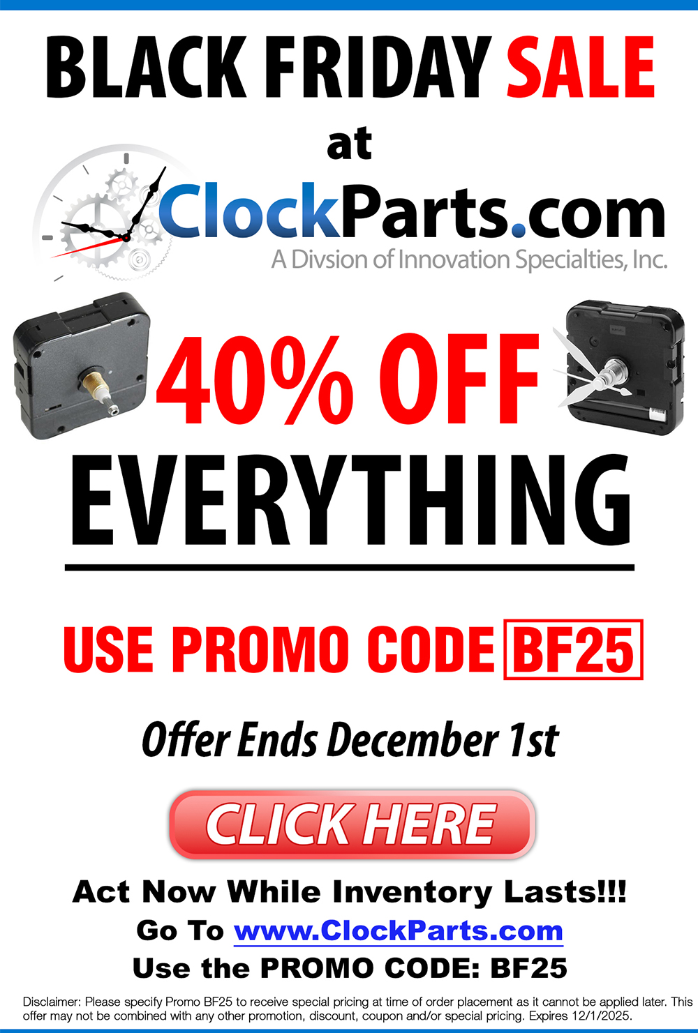 40% OFF EVERYTHING BLACK FRIDAY SALE - CLOCKPARTS.COM