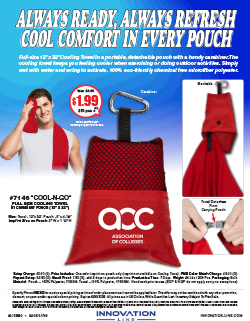 Full size 12" x 32" Cooling Towel in a portable, detachable pouch with a handy carabiner. The cooling towel keeps you feeling cooler when exercising or doing outdoor activities. Simply wet with water and wring to activate. The moisture wicking construction keeps your skin feeling dry to the touch unlike cotton towels. 100% eco-friendly chemical free microfiber polyester. Hand wash prior to use. Imprint not available on Cooling Towel