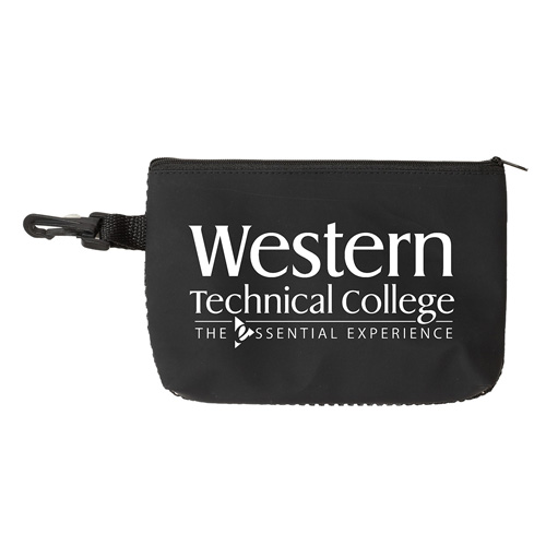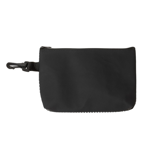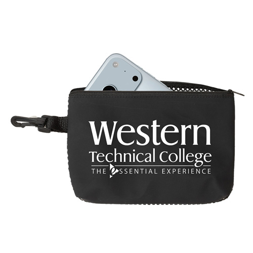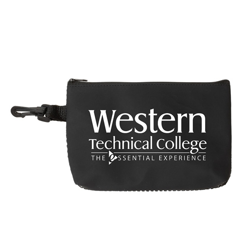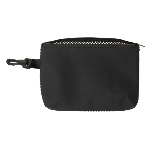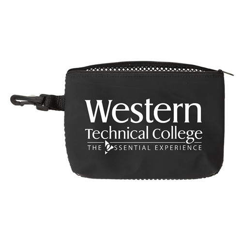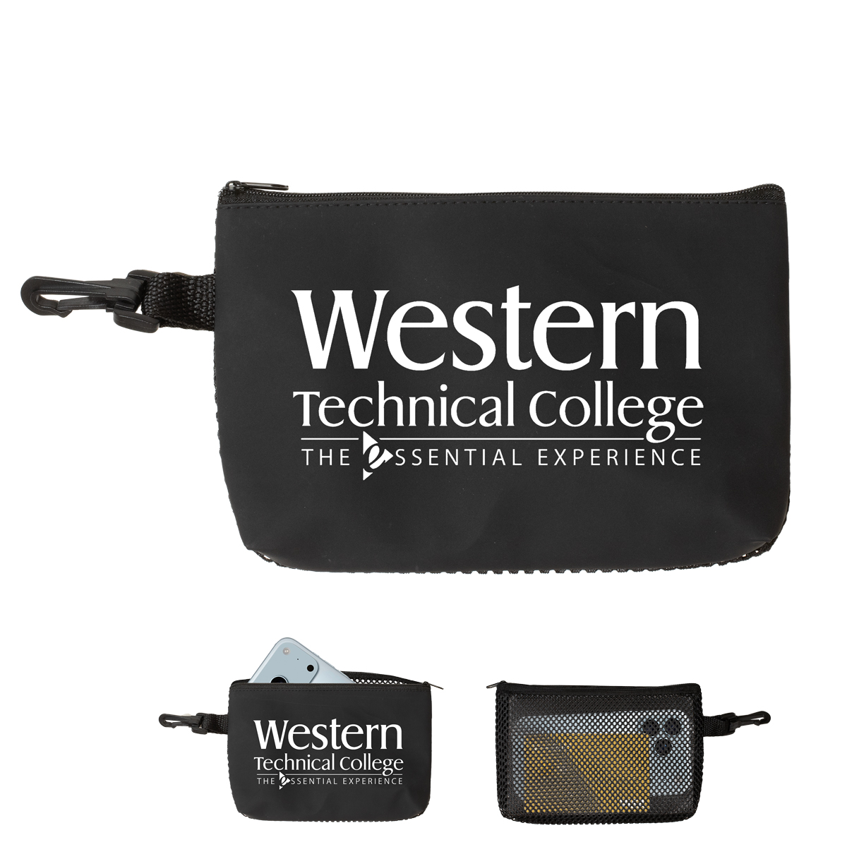 Large Soft polyurethane material on the imprint side with a see-through mesh on the back. Great for travel for cell phone accessories, tech accessories, toiletries or items for on the go.