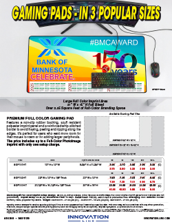 Elevate your gaming experience or optimize a desk or counter area with the spacious 22” W x 12” H Gaming Pad Desk Mat. It’s made of non-slip rubber with a whip-stitched hemmed black border to protect against fraying, peeling and ripping along the edges. A full color, full bleed, sublimation imprint is included in the price. Optional Packing: For Gaming Pad inserted into White Gift Tube please add $2.00 (G) and specify TUBE3X18.