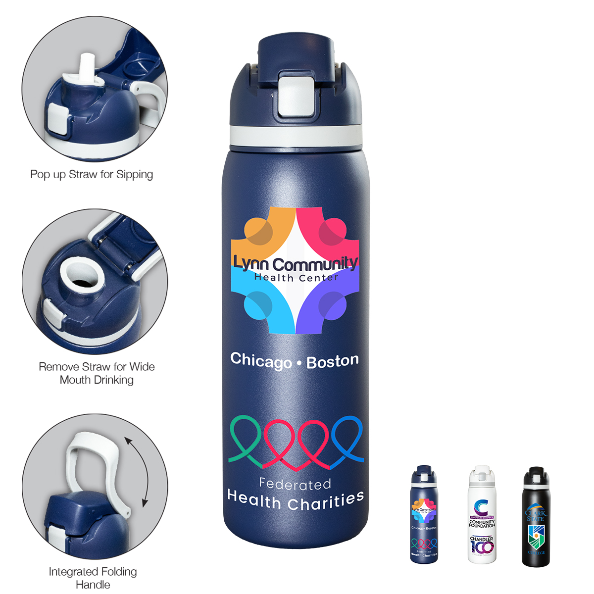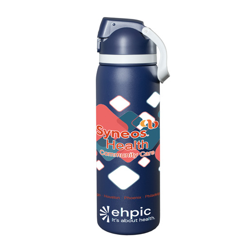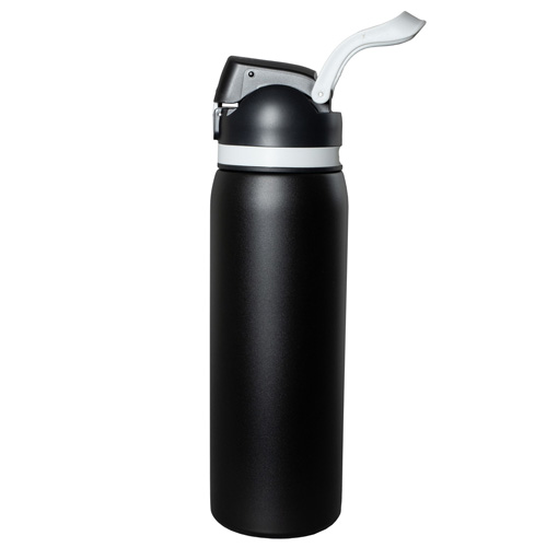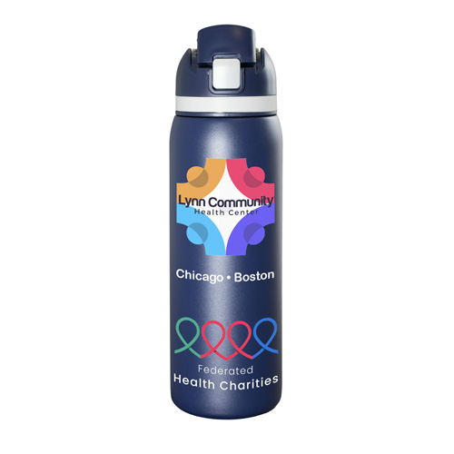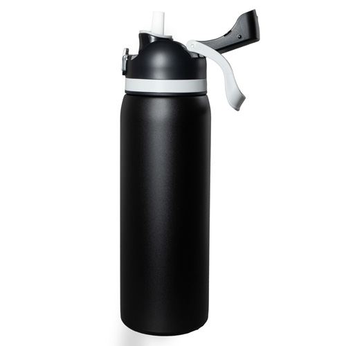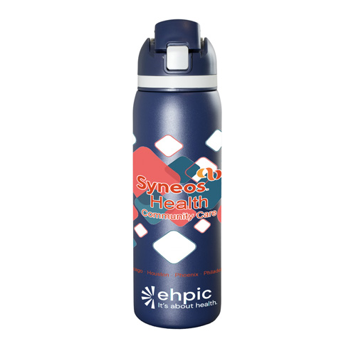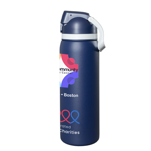 Meet the ‘Flex” 27 oz. double-wall stainless steel insulated bottle built for life on the run. With a single button press, the lid springs open and the straw pops up for effortless sipping -- or remove the straw and chug straight from the spout when you need refreshment fast. The screw on lid includes an integrated easy carry loop. BPA and lead free; FDA compliant. Prices include up to a full color imprint on one side, both sides or a full wrap – no extra charges for additional colors!