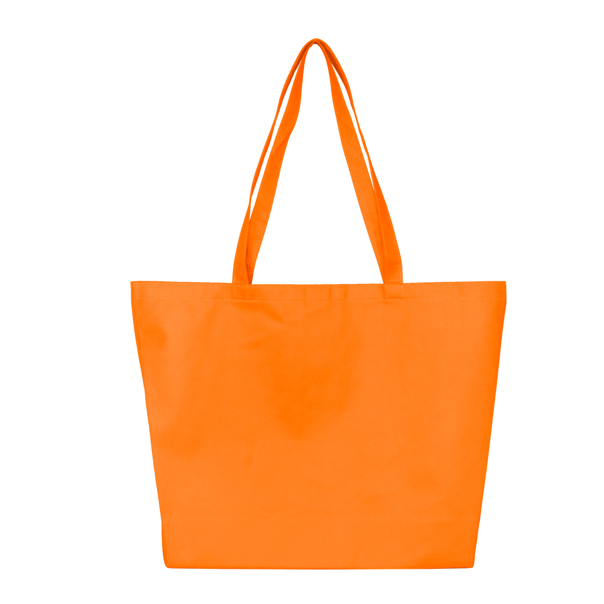 This 80GSM Non-woven polypropylene tote bag is economical, yet sturdy and has 28 5/8” cross-stitched handle straps for extra strength and a handy hook and loop fastener closure. It is sewn, not heat sealed for stronger, more durable seams. Reusable and Recyclable.