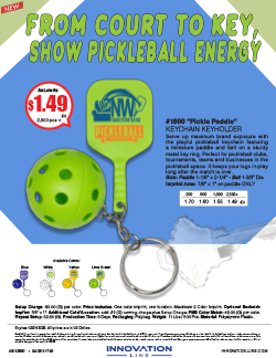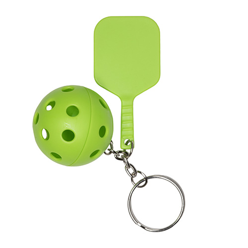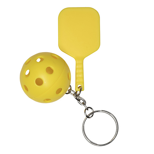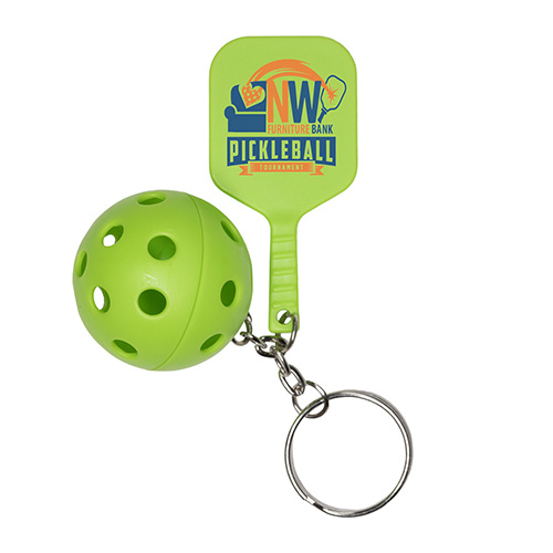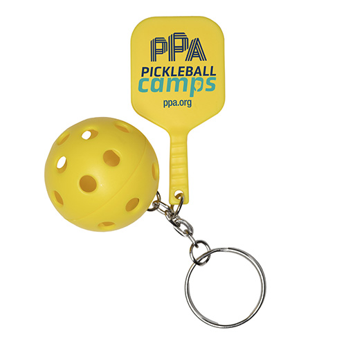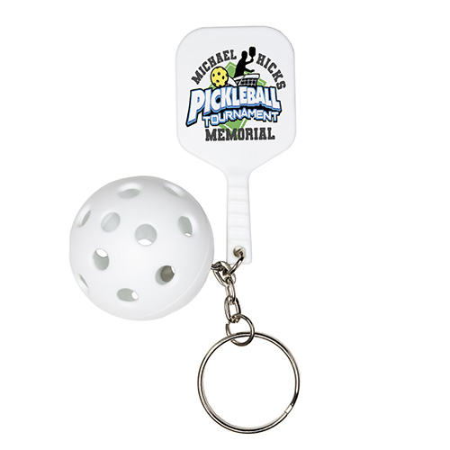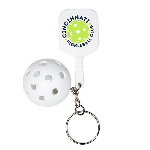 Serve up maximum brand exposure with the playful pickleball keychain featuring a miniature paddle and ball on a sturdy metal key ring. Perfect for pickleball clubs, tournaments, teams and businesses in the pickleball space. It keeps your logo in play long after the match is over.