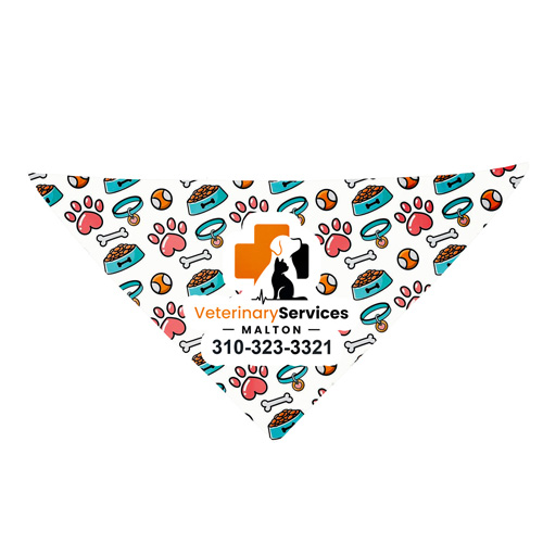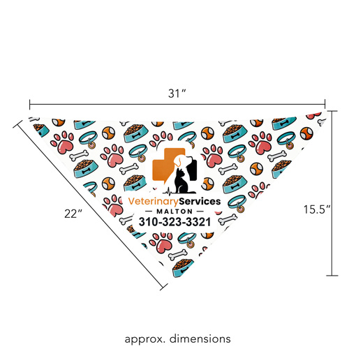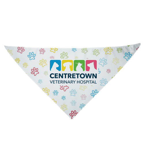 This eco-friendly half-cut bandana is made from lightweight and comfortable recycled polyester (RPET). It’s sized at 22" x 22" x 30" – a traditional large sized bandana cut cleanly in half. Perfect for both pets and humans, it delivers the same stylish look without the need to fold over or bulk up, all at a budget-friendly price. With a full color imprint included, every wearer becomes a walking, talking or barking billboard for your brand. Price includes up to a full color, full bleed, imprint with only one low setup charge – no extra charges for additional colors.