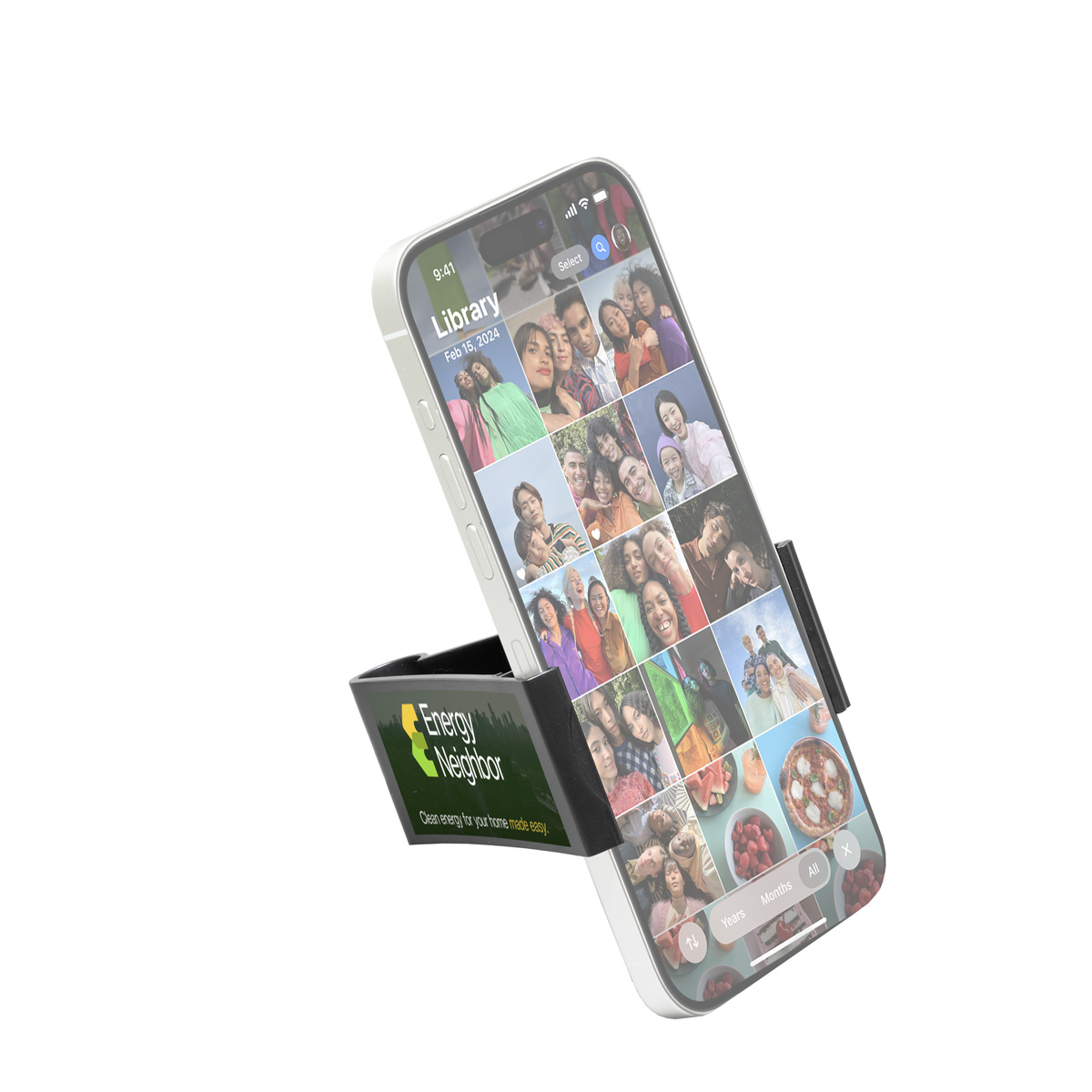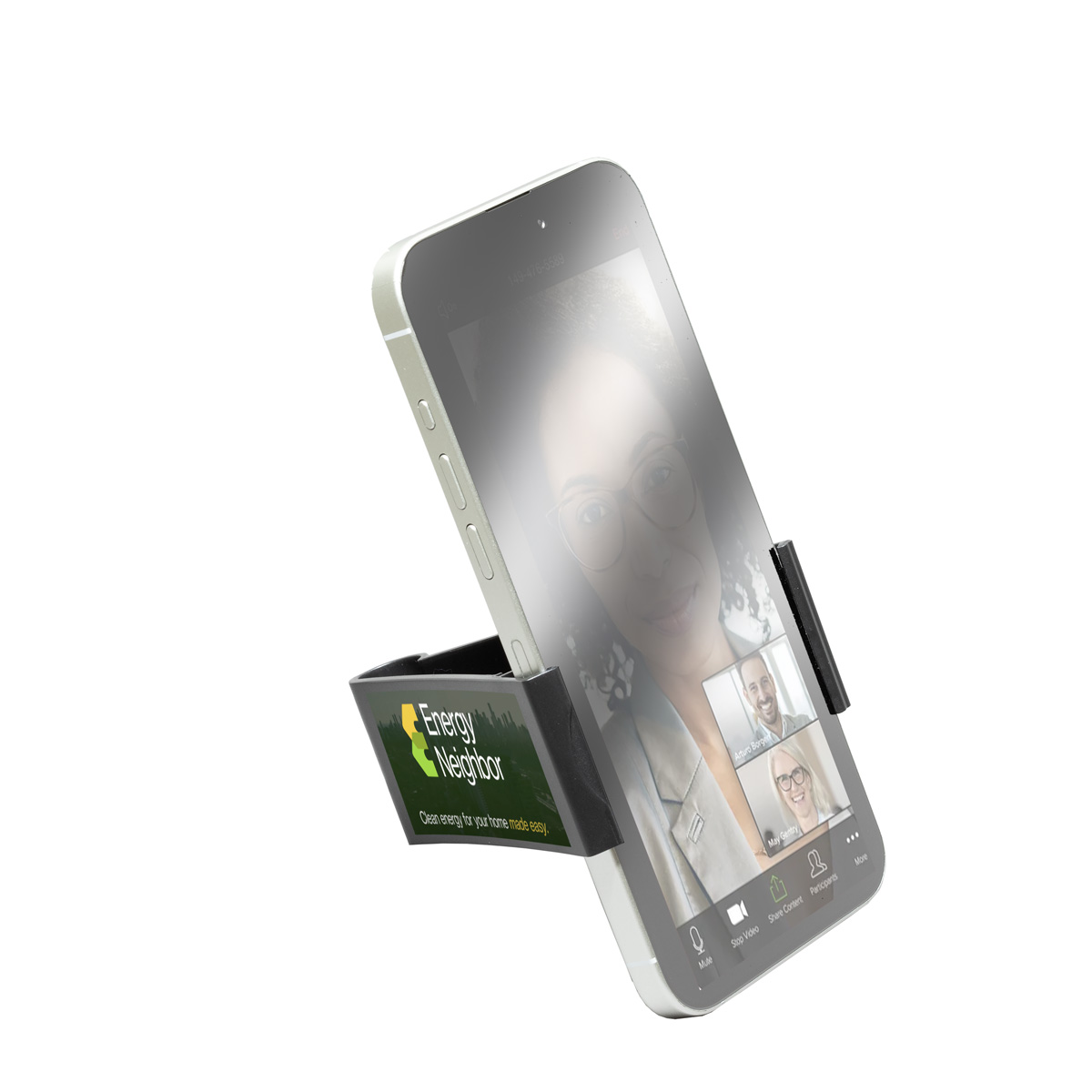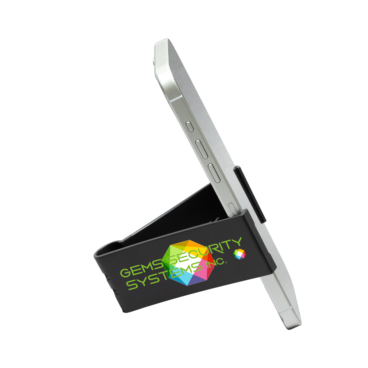 The Tekstand is a modern, adaptable phone stand that enhances your mobile viewing experience with convenience and style. Designed to support both portrait and landscape modes, it easily shifts between orientations and features multiple adjustable angles for optimal viewing comfort. Its compact, lightweight build makes it perfect for travel—ideal for everything from watching movies on a flight to video calls at your desk. With a full-color imprint area on the front, it also offers a bold space to highlight your brand or message. Sleek, functional, and portable, The Tek stand is the ultimate hands-free solution for life on the go. Compact, durable, and easy to use—this phone stand is ideal for desks, nightstands, and on the go. Full Color Imprinting Included.