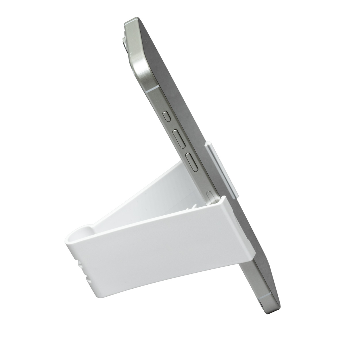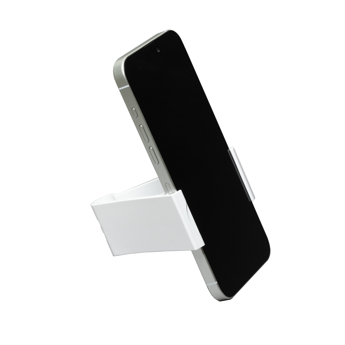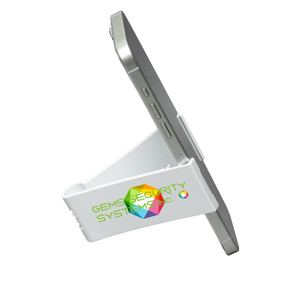 The Tekstand is a modern, adaptable phone stand that enhances your mobile viewing experience with convenience and style. Designed to support both portrait and landscape modes, it easily shifts between orientations and features multiple adjustable angles for optimal viewing comfort. Its compact, lightweight build makes it perfect for travel—ideal for everything from watching movies on a flight to video calls at your desk. With a full-color imprint area on the front, it also offers a bold space to highlight your brand or message. Sleek, functional, and portable, The Tek stand is the ultimate hands-free solution for life on the go. Compact, durable, and easy to use—this phone stand is ideal for desks, nightstands, and on the go. Full Color Imprinting Included.