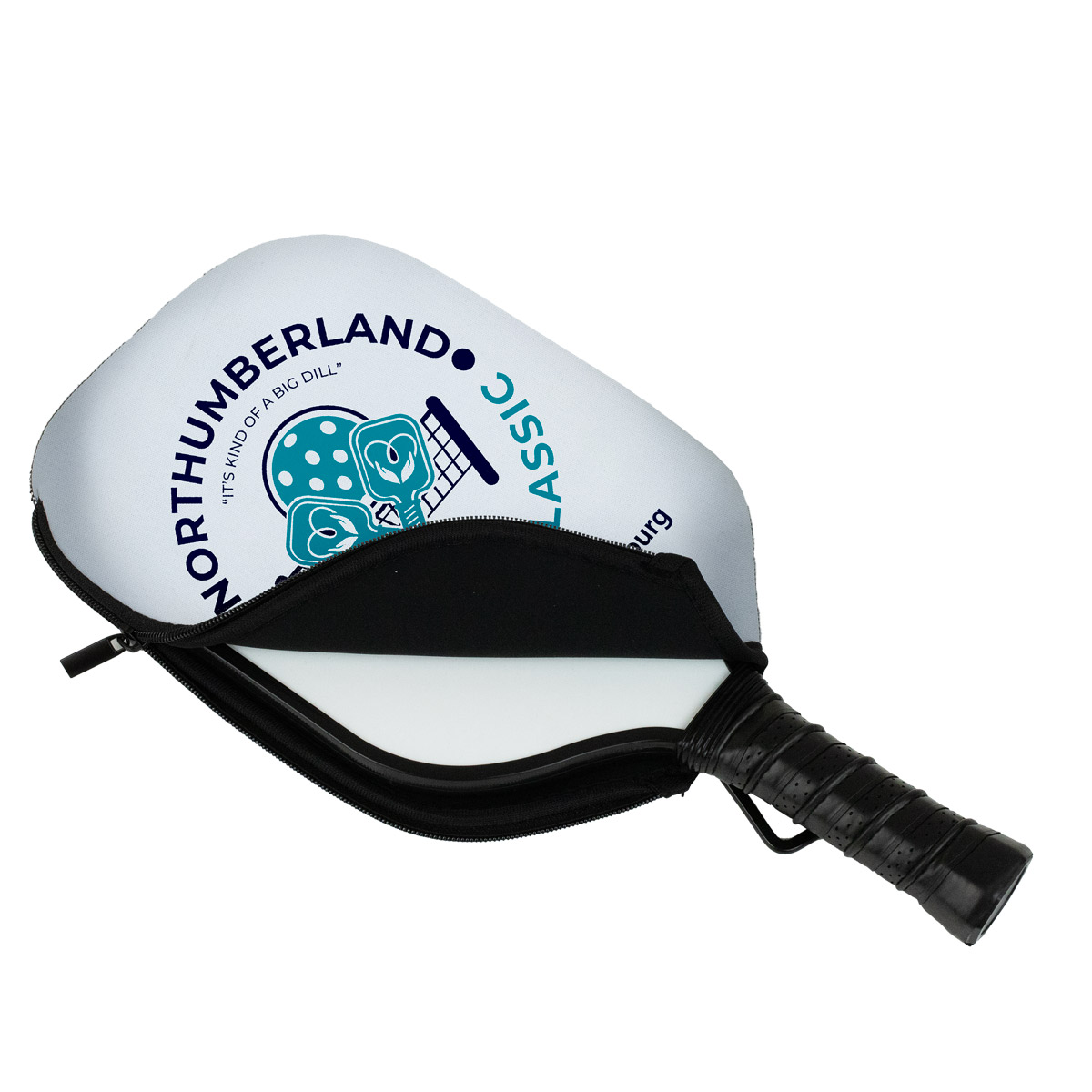 The Kitchen Pickleball Paddle Cover is a one-of-a-kind branding opportunity capitalizing on the hottest sport in North America. It’s made with durable 3mm neoprene for protection from scratches, dings and chips. It features a backside mesh pocket to store 2 pickleballs, a hidden inside storage pocket for valuables and a carabiner hook to clip onto fences. One color imprint on front side included (reverse side is not printable). Fits all sizes of paddles, including the elongated and wider sizes.