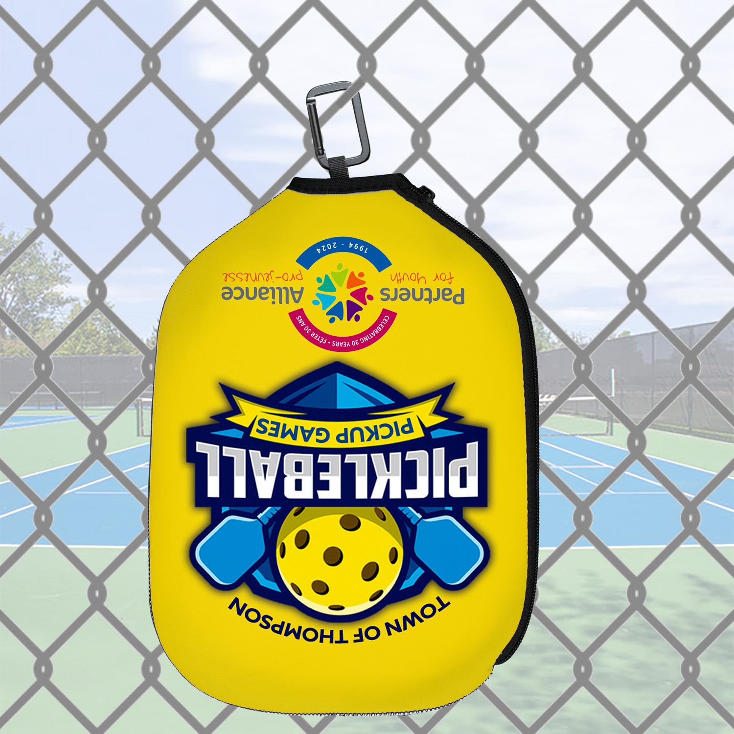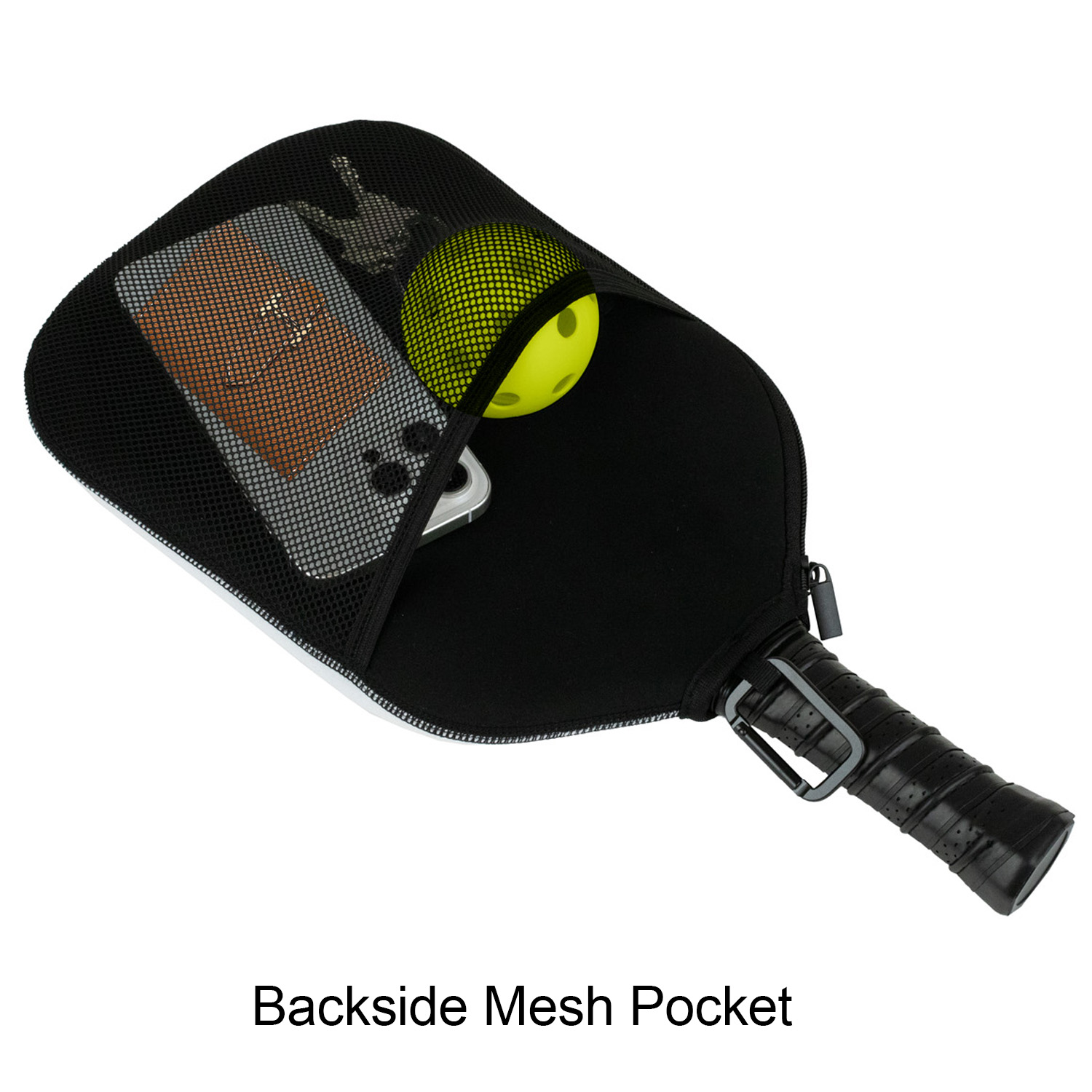 The Full Color Pickleball Paddle Cover is a one-of-a-kind branding opportunity capitalizing on the hottest sport in North America. It’s made with durable 3mm neoprene for protection from scratches, dings and chips. It features a backside mesh pocket for pickleball storage, a hidden inside storage pocket for valuables and a carabiner hook to clip onto fences. Includes up a full color, full bleed, PhotoImage™ imprint on the front of paddle cover (reverse side is not printable). Fits all sizes of paddles, including the elongated and wider sizes.